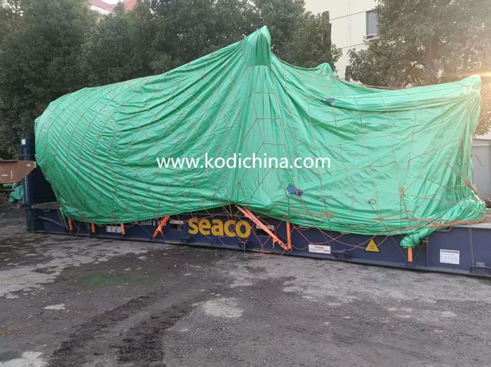 Each part of the machine is firmly fixed in the containers with straps and wooden frames to prevent shaking during the long time of land and sea transportation.