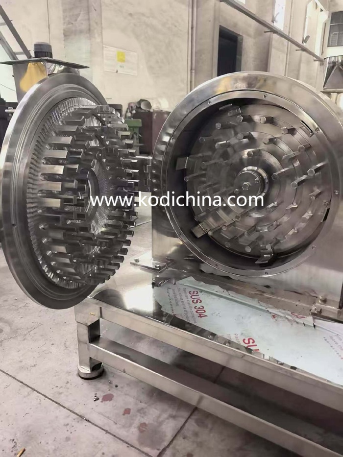 The universal grinder is an universal equipment widely used in industries such as pharmaceuticals, chemicals, metallurgy, food, and construction, for processing hard and difficult grinding materials. Its core working principle involves the high-speed relative motion between the movable and fixed teeth discs. Through the combined effects of the impact and friction of the teeth, as well as the collisions between the materials, crushing is achieved. The final products can be directly discharged from the main machine's grinding chamber. The particle size can be adjusted by changing the mesh size of different screens, typically ranging from 10 to 120 mesh.